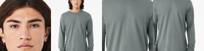 4.2 oz., 100% combed and ringspun cotton; 30 singles; Available in two-tone color options; Sideseamed; Unisex Fit; Ash 99/1, Athletic Heather 90/10, Dark Grey Heather 52/48 cotton/poly; Triblends: 50% poly/25% combed & ringspun cotton/25% rayon, 40 singles, 3.4 oz.; Neon colors: 52% combed and ringspun cotton 48% polyester, 40 singles, 3.6 oz.;