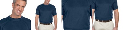 100% preshrunk cotton; Seamless double-needle stitched,1/2" rib knit collar; Sideseamed with tape neck and shoulders; Double-needle stitched sleeves & bottom hem; Sport Grey Ring Spun: 90/10 cotton/poly; Heather Sapphire, Heather Dark Chocolate: 65/35 poly/cotton; Heather Maroon, Heather Navy, Dark Heather:65/35 poly/cotton;