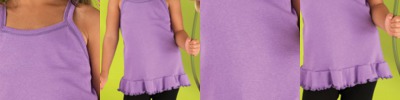 - Taped neck and shoulders and feminine 1/2" rib knit collar