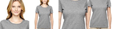 100% performance polyester interlock; Stain- and odor-resistant; Ultra tight knit resists snagging; Self-fabric narrow hemmed crewneck; Hemmed bottom and sleeve; Moisture management wicks away perspiration from the skin; The moisture evaporates quickly from the fabric surface;